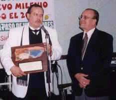 momento en que Héctor A. García recibe la placa al 1er. lugar en ventas