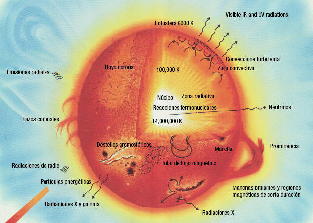 el Sol está formado por: 1) Núcleo, 2) Zona radiante, 3)