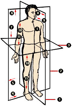 Utilizando estos términos describa la dirección del eje del corazón. Para las extremidades se emplean los términos: "proximal" que significa cercano a la inserción de la extremidad en el tronco; y "distal" que denota lo opuesto. Así, el húmero, hueso del brazo, presenta un extremo proximal, que participa de la articulación del hombro, y un extremo distal, que participa de la articulación del codo. Para vísceras huecas o cavidades corporales, se emplean los términos "interno" o "externo" para demostrar proximidad o lejanía del centro de la cavidad respectivamente. Por ejemplo, el corazón presenta una capa interna, el endocardio, y una capa externa, el pericardio. Por último, los términos "superficial" y "profundo" denotan, respectivamente, cercano o lejano de la superficie corporal. Por ejemplo, en el antebrazo existe un sistema venoso superficial, fácil de observar y puncionar, y un sistema venoso profundo, que acompaña a las arterias. Es aconsejable que Ud. practique esta terminología anatómica, ya que ella es de uso constante en el lenguaje médico.