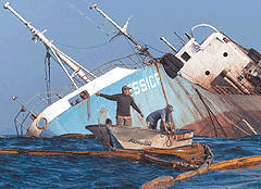 aves marinas y peces, y las playas quedan bañadas de petróleo.