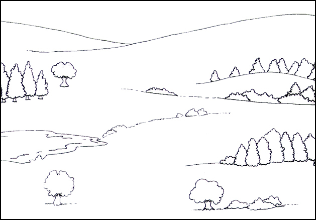 Instrucciones: Cambia este paisaje dibujando algunas obras de construcción que lo hagan ver distinto y luego colorea todo.
