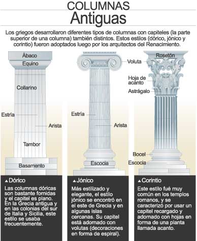 Los arquitectos del Renacimiento desecharon los modelo góticos, considerados como toscos. Así, reaparecieron las líneas rectas de los templos griegos. El arco de medio punto romano reemplazó al ojival. Las columnas con capiteles dórico, jónico y corintio decoraron las estructuras sencillas de las construcciones del Renacimiento, y la cúpula relevó a la bóveda gótica.