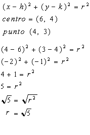 Por ejemplo, si el centro del círculo es (6, 4) y uno de sus puntos es (4, 3). Determinar el radio (r).