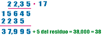 Revisemos el ejemplo anterior de 38 : 17. Su cuociente era