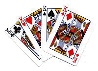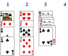 1.- Coloque 4 cartas cualesquiera cara arriba sobre la mesa, como se