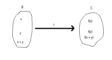 Una aplicación f de B en C es una aplicación lineal (también llamado homomorfismo) si cumple estas condiciones: