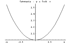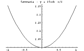 La ecuación genérica de la catenaria en coordenadas cartesianas es: y = a/2(ex/a + e-x/a) = a.cosh(x/a). Siendo a la distancia desde el origen hasta la curva.