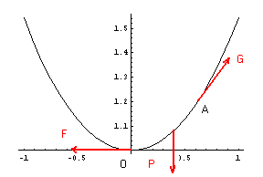 Consideró el trozo de cadena OA. Las fuerzas que actúan sobre ese trozo son el peso P, la fuerza F (que depende del lado izquierdo de la cadena y por lo tanto es constante) y G.
