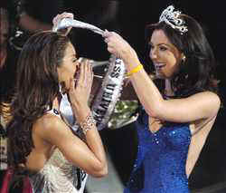Miss UniverseDefinición e historiaMiss Universo es un título de belleza femenina. Se entrega en un certamen realizado anualmente, calificando la belleza integral, inteligencia, seguridad y pose, de candidatas provenientes de diferentes partes del mundo; se dice que la ganadora es la mujer más bella del universo. La ganadora del título, lo lleva por un año, añadiendo a él, el año en que lo ganó. Miss Universo 2006, es Zuleyka Rvera Mendoza, de Puerto Rico. Además del Miss Universo, hay otros concursos de belleza que propugna lo mismo, buscar la mujer más bella del mundo, pero son menos populares y conocidos, como: el Miss Mundo, Miss Tierra, Miss Internacional, entre otros. El Miss Universo es un concurso muy popular y con gran seguimiento en los países anglosajones y latinoamericanos, en la mayor parte de Europa, en cambio es poco conocido y seguido HistoriaEl Certámen de Belleza, "Miss Universe" (Señorita Universo) fue creado a principios de la década de los años 1950s. Debe su existencia a la Miss América 1951, Yolanda Betbeze; quien rehusó posar con uno de los trajes de baño "Catalina's", provocando la ruptura del contrato que tenía la compañía textil Pacific Mills, con Miss América para promocionar a la marca, lo que obligó a Pacific Mills a crear su propio concurso para darse promoción, en asociación con el ayuntamiento de Long Beach (California, Estados Unidos). Pacific Mills fue luego comprada por Kayser-Roth y más tarde por Gulf and Western Industries. Así, el 28 de junio de 1952, en el Centro Internacional de Convenciones de Long Beach (California) vio la luz el certamen Miss Universo. A esa primera cita, acudieron 29 representantes de distintos países, resultando ganadora Armi Helena Kuusela Kovo, de Finlandia. Durante la década de los 50s, Miss Universo se realizó en Long Beach, donde reporteros de varíos países y una televisora local, cubrían el evento. En 1960 la televisora CBS se dio cuenta de la relevancia del concurso y lo compró, trasladándolo a Miami Beach (Florida). Esto desencadenó la molestia de los habitantes de Long Beach, que ya se había acostumbrado a ver cada verano sus calles adornadas por la presencia de las delegadas internacionales; el ayuntamiento de Long Beach, creó un nuevo certámen al que bautizó como International Beauty Congress (Congreso Internacional de Belleza) que a la postre se llamó Miss Internacional. Este concurso fue comprado en 1967 por unos empresarios japoneses, llevándoselo a Tokio. Miss Universo mientras tanto, fue cobrando más y más relevancia y se convirtió en un espectáculo transmitido a varios países a través de la CBS. En 1966 se hizó la primera transmisión a color; y en 1972 el concurso salió de Miami Beach, para empezar su viaje por el mundo. A partir de ese momento ha tenido varias sedes en los cinco continentes, y sus ganadoras también provienen de todos los rincones del planeta. En 1978, las computadoras hicieron su aparición en el concurso, a partir de ese año los jueces calificaban a las concursantes por medio de una terminal electrónica, que sumaba y promediaba las calificaciones de cada juez, para sacar la puntuación total de cada concursante. Dichas calificaciones se mostraban por televisión en la competencia en vivo, esto dejó de hacerse en el año 2002. "Catalina's" dejó de publicitarse por medio del concurso en 1994, a partir de esa fecha distintas marcas de traje de baño han ocupado ese lugar. Miss Universo tiene dos concursos hermanos, Miss Estados Unidos (Miss USA), concurso que designa a la representante de los Estados Unidos a Miss Universo, creado a la par de este en 1952 (y que se realizaban casi al mismo tiempo, las concursantes a Miss Estados Unidos y Miss Universo convivían durante varios días, hasta que se elegía a la Miss Estados Unidos, y dos días después, se elegía a Miss Universo); y el Miss Estados Unidos Adolescente (Miss Teen USA), versión para adolescentes del Miss Estados Unidos, creado en 1983.