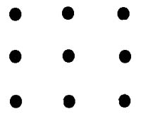 Traza cuatro segmentos rectilíneos, que sean horizontales, verticales y oblicuos, es decir, en las cuatro direcciones posibles, que pasen solo una vez por los nueve puntos siguientes:![]()