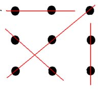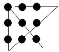 Traza cuatro segmentos rectilíneos, que sean horizontales, verticales y oblicuos, es decir, en las cuatro direcciones posibles, que pasen solo una vez por los nueve puntos siguientes:![]()