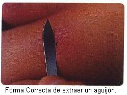 aguja hipodérmica estéril. La profundidad varía de acuerdo con el tipo de y bote