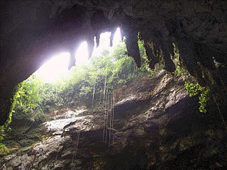 estrechamiento de cavernas por donde fluyen las corrientes subterráneas de