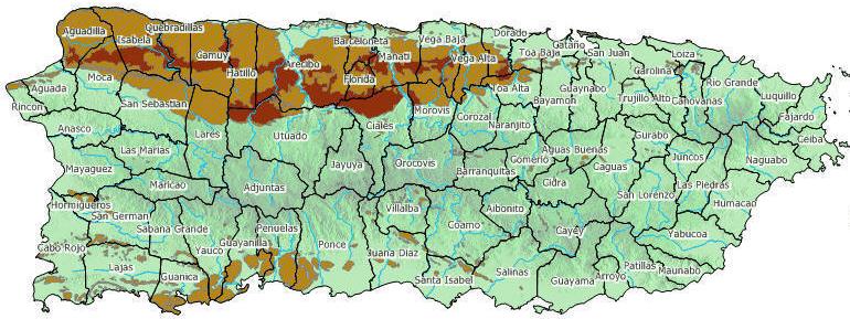 hacia el E desde Gurabo hasta Fajardo. La mayor parte de ella es de origen