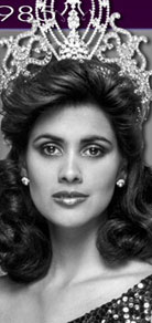 Deborah Carthy Deau, desde Puerto Rico, Deborah se trasladó a la ciudad de Miami en donde se llevó a cabo el certamen de Miss Universo. Allí, el lunes 15 de julio de 1985 Deborah Carthy Deu se convirtió en la segunda puertorriqueña en ser distinguida como la mujer más bella del universo en el famoso certamen de trascendencia mundial. La nueva soberana sorprendió a muchos al convertirse en la antítesis de la tradicional reina. En lo que se presenta como una muestra de su seguridad, Deborah recibió la corona sin llantos, ni grandes emociones. | |||