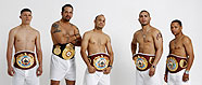 Puerto Rico ha producido la friolera de 58 campeones mundiales de boxeo. Ningún lugar del mundo con una extensión territorial como la de Puerto Rico, ha logrado tamaña hazaña, ni ciudad México, ni California ni siquiera Nueva York. Para Abril de 2009 teniamos 6 campeones activos, Miguel Cotto, Ivan Calderón, Daniel Santos, Juanma López, Román Rocky Martínez y José Carita López. En la foto a la derecha solo faltaba el mas reciente campeón Carita López. |