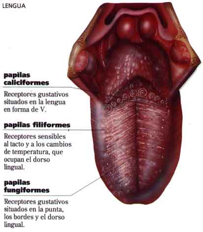 diferentes, que se distribuyen en determinadas zonas de la lengua.