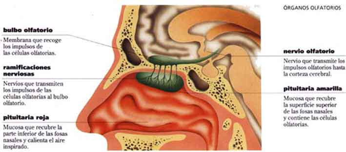 El olfato está relegado al fondo y a lo alto de la nariz,