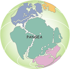 La teoría de Wegener proponía que hacia finales del Carbonífero (aprox. 300 m.a.), todos los continentes actuales formaban parte de un supercontinente, al que llamó "PANGEA", rodeado por un océano que cubría el resto de la superficie de la Tierra. La teoría de Weneger indicaba que PANGEA empezó a fragmentarse, primero en dos supercontinentes, Gondwana al sur y Laufasia al norte, y a continuación en los actuales continentes, que empezaron a separarse. La teoría de Wegener no supo explicar lo que originaba el movimiento de los continentes, debiendo enfrentar la concepción aceptada de que el planeta era una masa única e inmóvil, lo que hizo que la teoría fuera fuertemente criticada y no tuvo aceptación dentro de la comunidad geológica. |