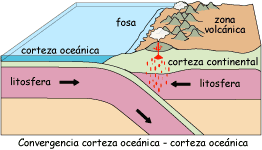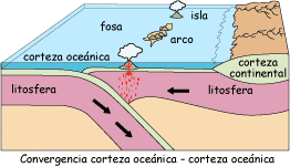 1.- La subducción de una plaza oceánica por debajo de otra, lo que da lugar a un arco de islas volcánicas (Islas del Caribe), que incluso puede hacer aflorar la corteza oceánica. |
