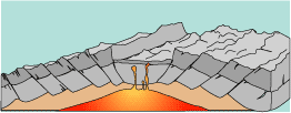 2.- La subducción de una placa oceánica por debajo de una corteza continental, provoca la elevación de grandes cadenas montañosas en el continente (los Andes y las Rocosas). |