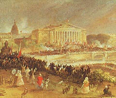 Tras la caída de Napoleón, la restauración de los Borbones de Francia fue breve. La Revolución de julio de 1830 estableció la monarquía de Luis Felipe, derribada a su turno por la Revolución de febrero de 1848, que instauró la segunda república. El príncipe Luis Napoleón (sobrino de Napoleón Bonaparte), figura central de la vida política francesa de la época, acabó con esta segunda república y restableció el imperio el 2 de diciembre de 1852, tomando el nombre de Napoleón III. En esa ocasión convocó a un referéndum que lo designó emperador. Le correspondió ser el dirigente de la política europea durante 20 críticos años. Con semejante apoyo, instauró un régimen dictatorial, con el que emprendió grandes planes económicos, industriales y técnicos, que incluso transformaron a París en la capital del mundo. Su política exterior se centró en debilitar a Rusia y a Austria y en mantener la amistad con Gran Bretaña. Desde 1859 fue un firme defensor de los diferentes movimientos nacionalistas, sobre todo del alemán y del italiano (que culminarían con la unificación de esos países). A su vez, participó en la guerra de Crimea (que se libró entre Rusia, por una parte, y las potencias aliadas: Turquía, Inglaterra, Francia y Cerdeña, por otra) y desarrolló una activa política colonial, con obras tales como: la apertura del canal de Suez, la intervención en México, la ocupación de Argelia, la de Senegal y luego la de la Cochinchina (hoy sur de Vietnam). El estallido de la guerra con Prusia sería el principio del fin del Segundo Imperio francés, siendo depuesto por la Asamblea tras la derrota de Sedán (1870). Unificación de ItaliaLas unificaciones en Europa se lograron a costa de unidades políticas ya existentes, que no perdieron su autonomía, en algunos casos, y que no cedieron su control sobre los territorios que dominaban. La intensidad y la duración de la crisis revolucionaria suscitada en Europa entre los años 1848 y 1850 dieron testimonio de la fuerza creciente de las ideas nacionales. En la segunda mitad del siglo XIX, casi todas las monarquías absolutas tuvieron que transformarse en monarquías constitucionales. Dos de los acontecimientos más importantes de este período fueron la unificación italiana y la unificación alemana, terminadas a costa de sangrientas guerras que modificaron la situación internacional. La idea de la unificación de los diversos estados de la península italiana en un solo estado unitario tenía como antecedente inmediato la creación, por parte de Napoleón I, de las repúblicas italianas y, posteriormente, del Reino de Italia; pero tras el Congreso de Viena la península quedó fragmentada en siete estados. Por una parte, había tres pequeñas entidades independientes, que eran los Estados Pontificios y los reinos de Piamonte-Cerdeña, en el norte, y de las Dos Sicilias, en el sur. Por otra parte, había territorios (Lombardía y Venecia) bajo el directo dominio del Imperio Austriaco, y algunos ducados (Parma, Módena, Toscana). A partir de entonces cobró fuerza la posición de alcanzar la unificación nacional. Fueron los reyes de Cerdeña quienes unificaron Italia, para fines propios. Esta unidad se realizó en dos etapas: en la primera, los austriacos fueron expulsados de sus posesiones. En la segunda, los diversos estados se agregaron al reino de Cerdeña y se fundieron en un solo reino. Los principales fundadores de esta unidad italiana fueron Víctor Manuel (rey de Cerdeña), su ministro Camilo Benso, conde de Cavour, el patriota republicano Giuseppe Garibaldi y Napoleón III. La unificación comenzó en el año 1858, cuando Napoleón III, en la entrevista de Plombières, se comprometió a ayudar a la causa nacionalista italiana a cambio de recibir el condado de Niza y Saboya. La guerra de Austria contra el Piamonte y Francia, en 1859, fue un fracaso para el ejército austriaco (batallas de Magenta y Solferino); pero el temor a que Prusia interviniera a favor de Austria llevó a Napoleón III a firmar con este último país la Paz de Zurich, en ese mismo año. En 1861, el reino de Nápoles se integró al reino de Italia, tras la expedición de los camisas rojas de Garibaldi, ocurrida en 1860. Ese mismo año, Víctor Manuel había sido proclamado rey de Italia y establecido el parlamento italiano en Turín. En 1867, Garibaldi intentó apoderarse de Roma, pero la intervención francesa en favor del Papa se lo impidió. La derrota francesa frente a Prusia, en la llamada Guerra Franco-Prusiana, privó al papado del apoyo de Napoleón III, posibilitando la ocupación de Roma (1870). Los estados papales quedaron reducidos a la Ciudad del Vaticano. En 1871, la unificación de Italia ya se había conseguido y se estableció en Roma la capital del estado parlamentario italiano. Unificación de AlemaniaEn forma paralela a Italia, después de las revoluciones de 1848 los estados que formaban la Confederación Germánica se unificaron, como consecuencia de una profunda maduración social y económica. Sin embargo, esta confederación siempre estuvo dominada por los intereses de Austria y Prusia. A partir de la década de los años cincuenta, Prusia, con una imagen de Estado moderno, debido a su dinámica economía y la eficacia de su gobierno, se convirtió en el centro económico de Alemania. Tras la ascensión al trono de Guillermo I se nombró como canciller a Otto von Bismarck –conocido como el canciller de hierro–, quien ya había estado en el poder junto a Federico Guillermo IV y se identificaba fuertemente con la causa nacionalista. Su principal proyecto fue lograr el sometimiento de Austria, realizando asimismo la unificación de Alemania y su elevación a primera potencia mundial. Decidido a debilitar a Austria, Bismarck la incitó a apoyar la causa de los ducados de Schleswig-Holstein y Lavenburgo, territorios de población danesa y alemana que Dinamarca reclamaba para sí. Después de un conflicto b