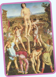 | En las últimas décadas, las innovaciones principales del arte renacentista como el dominio de la perspectiva aérea y lineal, la importancia del paisaje, la representación de la figura de modo individual y la rigurosa elaboración de la composición fueron consolidadas y superadas. En Florencia, artistas como Antonio del Pollaiuolo y Andrea del Verrocchio observaron la complejidad de la anatomía humana, estudiando de forma directa el cuerpo humano. Tanto escultores como pintores, ponen especial énfasis en la musculatura, y así lo ejemplifica la obra de Pollaiuolo el Martirio de San Sebastián (1475, Londres, National Gallery). | ||||