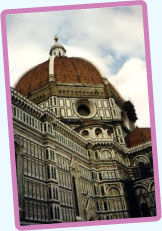 | Uno de los primeros monumentos es la cúpula de la catedral de Florencia. Durante el Románico y el gótico no existieron cúpulas. De repente, Brunelleschi, saltaba a los siglos en que se construyó el Panteón e introducía el arco de medio punto, las curvas atrevidas, el almohadillado de las fachadas, o sea las piedras salientes, recortadas, que pueden verse en todas sus obras; por ejemplo, en el Palacio Pitti de Florencia. Los principales exponentes del quattrocento:Felipe Brunelleschi (1377-1446)León Bautista Alberti (1402-1472) | ||||
