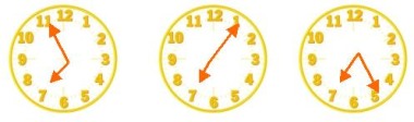 En el primer reloj la hora se puede leer: 11 y 45 o 12 menos cuarto, porque falta 1/4 para las 12 en punto.