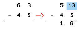 63 – 45 = 18