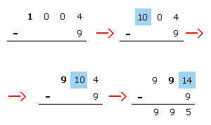 La resta 1004 – 9 se