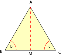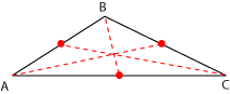 Como su nombre lo indica, son las bisectrices de los tres ángulos interiores. Las tres bisectrices se cortan en un punto, llamado el incentro del triángulo. |