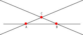 Entre las figuras más simples que se generan a partir de rectas secantes están los triángulos. Tres rectas secantes dos a dos que no se corten en un único punto, producen un triángulo cuyos vértices son los tres puntos de corte: |