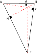 de manera tal que son perpendiculares al lado opuesto. Por ejemplo,