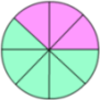 En el dibujo, hemos hecho 8 porciones, 3 rosas y 5 verdes.