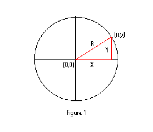 Sea (x, y) un punto cualquiera de la circunferencia. Como veis en la figura se forma un triangulo rectángulo y entonces x2 + y2 = R2. Esa es la ecuación de la circunferencia.