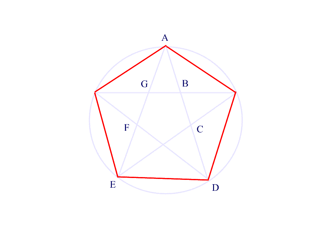 El pentágono regular está relacionado con el número de oro. Si hacemos ED = 1, AC será igual al número de oro.