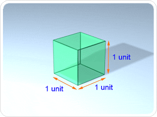A unit for measuring volume. All 6 faces of a cubic unit are square, and all 12 edges are one unit in length.