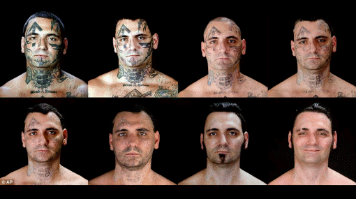 o ex-presidarios están tatuados, el 70.3% de las prostitutas están tatuadas, el