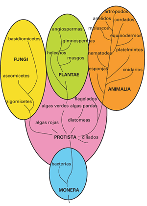 animales Son tan numerosos y variados los animales que hoy conocemos, que sería imposible estudiarlos uno por uno. Por eso, para tener una idea de las características orgánicas, se les agrupa por sus semejanzas. En 1758, Carlos Linneo, el fundador de la taxonomía moderna (ciencia de la clasificación del mundo natural), publicó un sistema de clasificación para los animales. La parte principal de su esquema de clasificación, era el concepto de género, es decir, un grupo de organismos estrechamente relacionados que se pueden dividir en especies. En 1959, Robert H Whittaker, ecólogo de la Universidad de Cornell, también propuso separar los hongos de los vegetales, pero incluyéndolos en un nuevo reino, llamado Mycetae o Fungi. Quedaron a partir de entonces establecidos cinco reinos: Monera, para bacterias y algas procarióticas; Protista o Protoctista (no es exactamente lo mismo, el segundo incluye formas multicelulares, el primero no) para protozoos, algas (algunas o todas) y ciertos hongos inferiores; Plantae, para los vegetales (embriófitos); Fungi, para los hongos; y Animalia, para los metazoos. Quien hizo más para difundir esta nueva clasificación fue Lynn Margulis, de la Universidad de Massachusetts, en especial por medio del libro que publicó junto a Karlene Schwartz llamado Five Kingdoms (Cinco reinos). Este libro fue considerado por la revista American Scientist en 1999 como ‘uno de los 100 libros que formaron un siglo de la ciencia’. La figura 5 representa el árbol filogenético de los organismos tal como, a grandes rasgos, surge del sistema de los cinco reinos. Los géneros relacionados forman una familia; las familias pertenecen a un orden; los órdenes se agrupan en clases; y las clases son categorías dentro de un tipo. Por ejemplo, te damos la clasificación de "Gato".