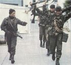 HUNT luego de una fugaz resistencia por parte de marines britanicos que ocasiona una de las primeras bajas, la del capitán de la armada argentina PEDRO GIACHINO durante la toma de la gobernación.