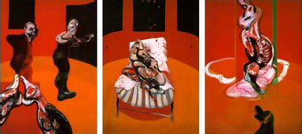 Bacon fue un artista figurativo, pero que supo plasmar la dolorosa condición del ser humano desde la más absoluta subjetividad. Recurrió al informalismo, el expresionismo y a la evocación de los sueños característica del surrealismo, pero sus composiciones obedecen al racionalismo más estricto. Partiendo de representaciones ya existentes, como fotogramas de películas de Buñuel o imágenes médicas de enfermedades bucales, las recompuso para dotarlas de una violencia al estilo de Munch o Grünewald.
