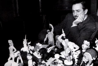 En 1938, Snow White and the Seven Dwarfs (Blancanieves y los siete enanitos), la primera película de dibujos animados de larga duración, ganó para Walt Disney uno de los numerosos galardones que obtendría de la Academia de Cinematografía. En 1955 fundó en Anaheim (California) «Disneylandia», un vasto parque de atracciones dedicado al recreo educacional. Walt Disney produjo posteriormente varios filmes de dibujos animados de larga duración tales como Pinocho (1939), Fantasía (1940), Bambi (1942), Cinderella (La Cenicienta, 1950) y Alice in Wonderland (Alicia en el País de las Maravillas, 1951), Peter Pan, La dama y el vagabundo y 101 dálmatas. Últimamente Walt Disney había abandonado los dibujos de animación como único medio de expresión y produjo también documentales sobre la naturaleza tales como The Living Desert (El desierto viviente, 1953) y The Vanishing Prairie (La gran pradera, 1954); narraciones clásicas de aventuras, como 20000 Leagues Under the Sea (20000 leguas de viaje submarino, 1954) y David Crockett, King of the Wild Frontier (David Crockett, 1955); comedias, como The Absent Minded Professor (Un sabio en las nubes, 1961) y Mary Poppins (1964), así como numerosos programas televisivos. A lo largo de su dilatada carrera artística, Walt Disney recibió treinta y un Óscares de la Academia de Artes y Ciencias Cinematográficas de Hollywood; la más alta condecoración de los Estados Unidos (la medalla presidencial de la Libertad), así como diplomas de las universidades de California, Yale y Harvard. Muchas de sus obras están impregnadas de tal humanidad y poesía que vivirán mucho tiempo en la memoria de cuantos las contemplaron. |
