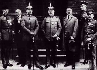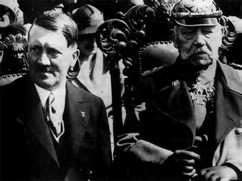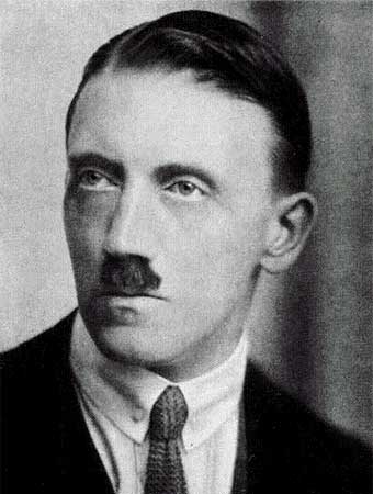 Según testimonios, fue un soldado valiente y se ganó pronto la simpatía de sus superiores gracias a su marcado antisemitismo. Fue nombrado oficial de propaganda del Reichswehr, el ejército regular, y se dedicó a predicar el ideal nacionalista y la lucha contra los bolcheviques entre sus camaradas, dando numerosas conferencias. El 12 de septiembre de 1919 fue comisionado a asistir a una asamblea del incipiente Partido Obrero Alemán (DAP) con el objeto de recabar información sobre dicha asociación. Hitler intercambió impresiones con el presidente del DAP, Anton Drexler, y todo habría terminado allí, quizá, si no hubiese recibido poco después una tarjeta postal en que la dirección del partido (entonces no contaba con más de cincuenta afiliados) le comunicaba su ingreso en el mismo. En marzo del año siguiente abandonó la milicia para dedicarse por entero a su actividad política; fue entonces cuando el partido añadió a su denominación Nacionalsocialista, convirtiéndose en el Nationalsozialistische Deutsche Arbei-terpartei (de cuya abreviatura surgiría la palabra nazi), y Hitler se convirtió en su jefe de propaganda. Como tal consiguió reclutar a personajes destacados de la sociedad muniquesa, esencialmente nacionalistas y, en menor medida, a trabajadores, cuyo número fue disminuyendo a medida que el NSDAP se engrandecía, y él se hacía con la presidencia, tras eliminar a Drexler. En noviembre de 1923, siguiendo el ejemplo de Mussolini en Italia, intentó un golpe de estado, conocido como el putsch de 1923. Los dos cabecillas de la intentona, Hitler y Ludendorff, fueron detenidos y juzgados; su fracaso le valió una condena de cinco años de prisión, de los que sólo cumplió nueve meses debido a la presión de sus camaradas. De esa estancia en la prisión de Landsberg surgió la primera redacción de Mein Kampf, dictada a Rudolf Hess.