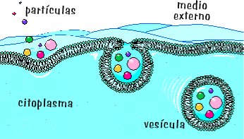 pinocitosis, las partículas se unen a una zona