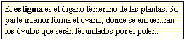 El estigma permite la entrada del polen; el estilo, el avance de