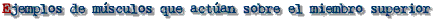 Músculo plano en forma de abanico, ubicado en la zona anterior del tórax detrás de la glándula mamaria, se extiende desde el extremo interno de la clavícula, la cara anterior del esternón y de los seis primeros cartílagos costales. Se dirige hacia afuera insertándose en el extremo proximal del húmero; forma la pared anterior de la axila. Acción, produce aducción y rotación interna del brazo, llevándolo hacia adelante y a medial. Deltoides Músculo de forma más o menos triangular, cubre la articulación escápulo-humeral, se extiende desde el tercio externo de la clavícula y de la espina del omóplato y el acromion; se dirige hacia abajo para insertarse en el extremo superior del húmero. Debido a su forma presenta tres funciones distintas, la porción media del músculo produce abducción; la porción ventral, rotación interna y aducción y la porción posterior, rotación externa y aducción. Músculos que actúan sobre el codo Bíceps braquial. Músculo ubicado en la región anterior del brazo, presenta dos orígenes en el omóplato, uno desde la apófisis coracoides (porción corta) y otro, desde el extremo del hueso sobre la cavidad glenoidea (porción larga). Se dirige hacia abajo formando un solo tendón que se inserta en la tuberosidad bicipital del radio. Acción flecta y produce supinación del antebrazo además colabora en el movimiento de flexión del hombro. Tríceps braquial. Músculo largo ubicado en la región posterior del brazo, tiene tres orígenes, uno por debajo de la cavidad glenoidea del omóplato (porción larga) y dos orígenes en la cara posterior del húmero (vasto interno y externo); se unen las tres porciones en un sólo tendón que se insertan en el olecranon; produce extensión del antebrazo y además colabora en los movimientos de extensión y aducción del hombro. Músculos que actúan sobre la muñeca y los dedos Los músculos en el antebrazo se agrupan en dos masas musculares, una flexora de ubicación ántero-medial y otra extensora póstero-lateral, que actúan sobre la muñeca y los dedos. En la mano existen músculos cortos