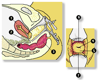 B) Muestra la vista que se tiene del cuello uterino a través de la vagina, aquí se aprecian perfectamente los fornix vaginales. |