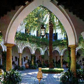 Ricas y numerosas columnas ostentábanse allí, orgullosas con sus capiteles y fustes alegremente ornados por el cincel de los artistas arábigo—españoles, que sabían, como nadie, multiplicar ingeniosamente las combinaciones de las figuras geométricas asociadas a hojas y flores de tulipán, de azucenas y de mil plantas diversas, en una armonía maravillosa y de indecible belleza.
