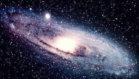 y en una flecha la ubicación de nuestro sistema solar